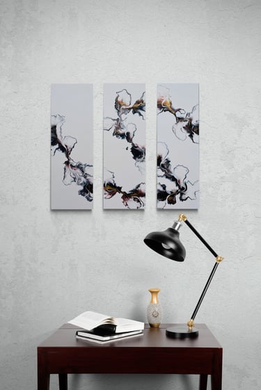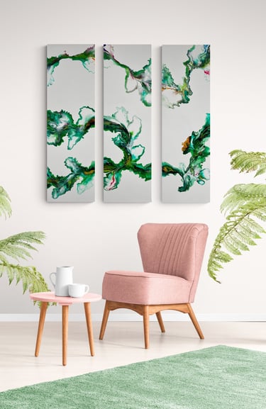 See how the vivid colors of the paintings go perfect in various interiors.